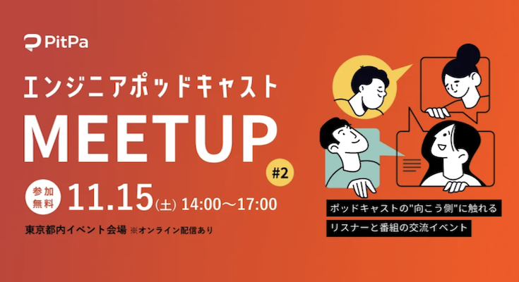 オトバンク / Pitpa、人気エンジニアポッドキャスト番組の合同ミートアップイベント「エンジニアポッドキャスト meet up Vol.2」を11月15日(土)に開催