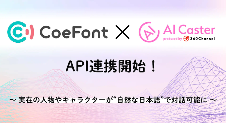 株式会社360Channelは、AI技術を活用した情報発信サービス「AI Caster(エーアイ キャスター)」と、株式会社CoeFontが提供するAI音声プラットフォーム「CoeFont」とのAPI連携を開始しました。