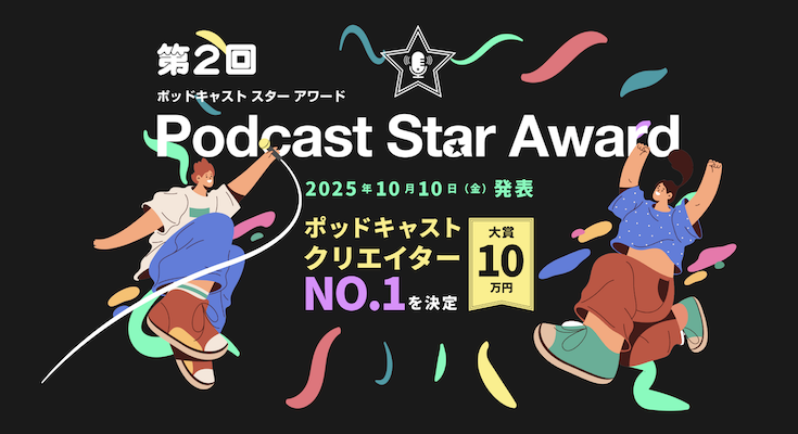 ポッドキャストスターアワードは、ポッドキャストクリエイターにスポットを当てた、ポッドキャストクリエイターNo.1を決定するアワードです。ラジオとは違った、個人の想いや情報を発信するポッドキャストクリエイターたちにとって目標とする存在となることを目指し設立されました。開催第2回目となる今回の結果が2025年10月10日に発表されたのでお伝えします。