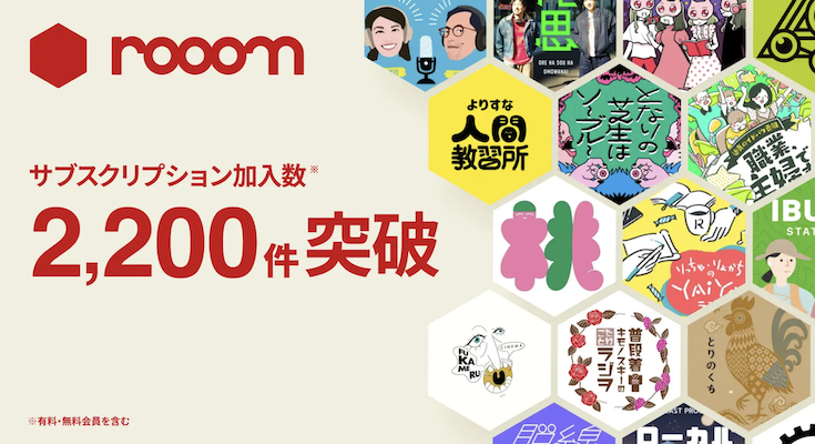 雑談 / ポッドキャスト特化型メンバーシップサービス「rooom」、サブスクリプション加入数 2,200件突破、新たに18組のポッドキャスターが参加