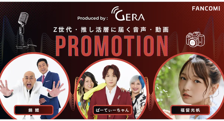 プロシューマー支援事業を展開するファンコミュニケーションズは、お笑いラジオアプリ「GERA」において、Z世代や“推し活”層へのリーチ強化を目的に、タイアップ広告およびYouTubeプロモーションを大幅に拡充したと発表した。お笑い芸人やタレントを起用し、音声と動画を組み合わせたクロスメディア展開により、認知拡大からファン化までを一体的に支援する。