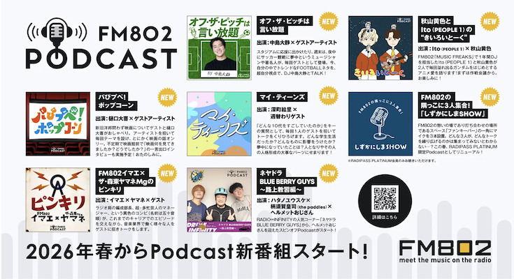 各番組の詳細情報や最新エピソードは、FM802公式サイトのPodcastページ(funky802.com/site/podcast)で確認できます。気になる番組があればぜひフォローして、配信を楽しみに待ちましょう。