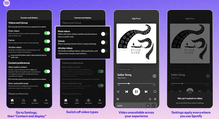 2026年4月9日、SpotifyのChief Public Affairs OfficerであるDustee Jenkins氏が公式ブログを通じて、動画再生に関する新しいコントロール機能の拡充を発表しました。これまでファミリープランの13歳未満ユーザー向けに提供されていた動画オフ機能が、ファミリープラン内の全アカウントに拡大されるだけでなく、Free、Premium、Basicを含むすべてのアカウントタイプで利用可能になります。