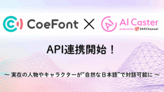 10. 音声合成 360Channelの「AI Caster」、AI音声プラットフォーム「CoeFont」とAPI連携開始 株式会社360Channelは、AI技術を活用した情報発信サービス「AI Caster(エーアイ キャスター)」と、株式会社CoeFontが提供するAI音声プラットフォーム「CoeFont」とのAPI連携を開始しました。 株式会社360Ch... 2025.11.25 10. 音声合成